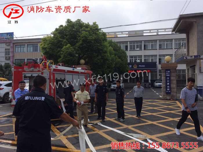 9月22日送到阜陽市潁上縣江口鎮政府的招標采購車輛國五東風多利卡3噸水罐消防車收到當地領導的高度好評,順利交付使用方。
