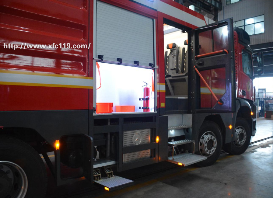 江特牌JDF5390GXFSG180水罐消防車 江特牌JDF5390GXFSG180型水罐消防車,整車主要由梅賽德斯-奔馳Arocs4158型消防車專用底盤. 獨立乘員室.水罐.泵室.泵送系統.智能集 成控制系統.水槍.水炮.隨車消防器材以及其他附屬設施組成。整車改裝后載荷分配均勻, 質心位置和穩定性計算精確,內部空間布局合理, 能充分滿足操作人員的使用要求。 |