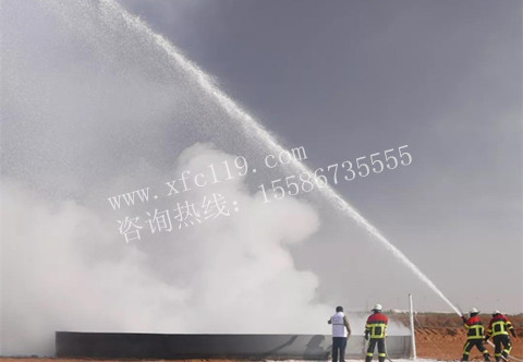 隨后,主持人宣布第二場甲醇火滅火演練即將開始,現場開來一輛油罐車,在所有領導與嘉賓的注視下完成了1.5噸甲醇的加注工作,主持人開始介紹甲醇火的特性,其是無色有酒精氣味易揮發的液體,是重要的基本有機化工原料,具有劇毒、易燃燒性,其蒸汽與空氣在一定范圍內可形成爆炸性混合物,形成的火災十分難滅,異常危險,現場準備工作格外小心謹慎,一切就緒后,隨著一聲指令,開始了甲醇點燃,此時的油面溫度為14℃,燃燒過程中,可見油池上方出現了受熱之后空氣擾動的畫面,燃燒至9分鐘左右,消防隊員使用3支消防槍,用時85秒鐘,完全撲滅甲醇火,使溫度降低至環境溫度8℃,本次實驗泡沫混合液消耗15.3L,水量消耗494.7L。
