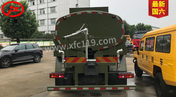 載液量10噸, 整車裝備前沖后灑,正常情況下可作為森林供水車使用,可選裝消防泵和消防炮,